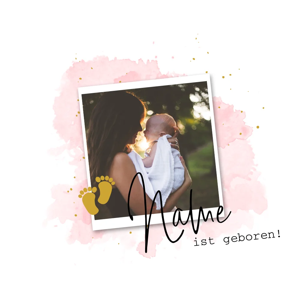 Geburtskarte mit eigenem Polaroid-Look Foto und Füße