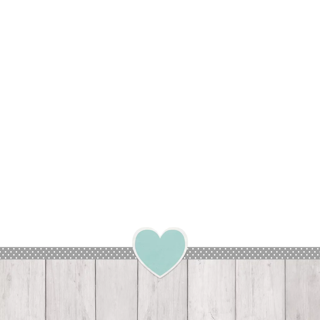 Umschlag mit Holzdesign, Punkten und blauem Herz