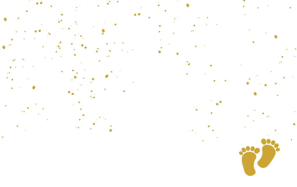 Umschlag im Stil deiner Geburtskarte mit Farbflecken und Babyfüsschen