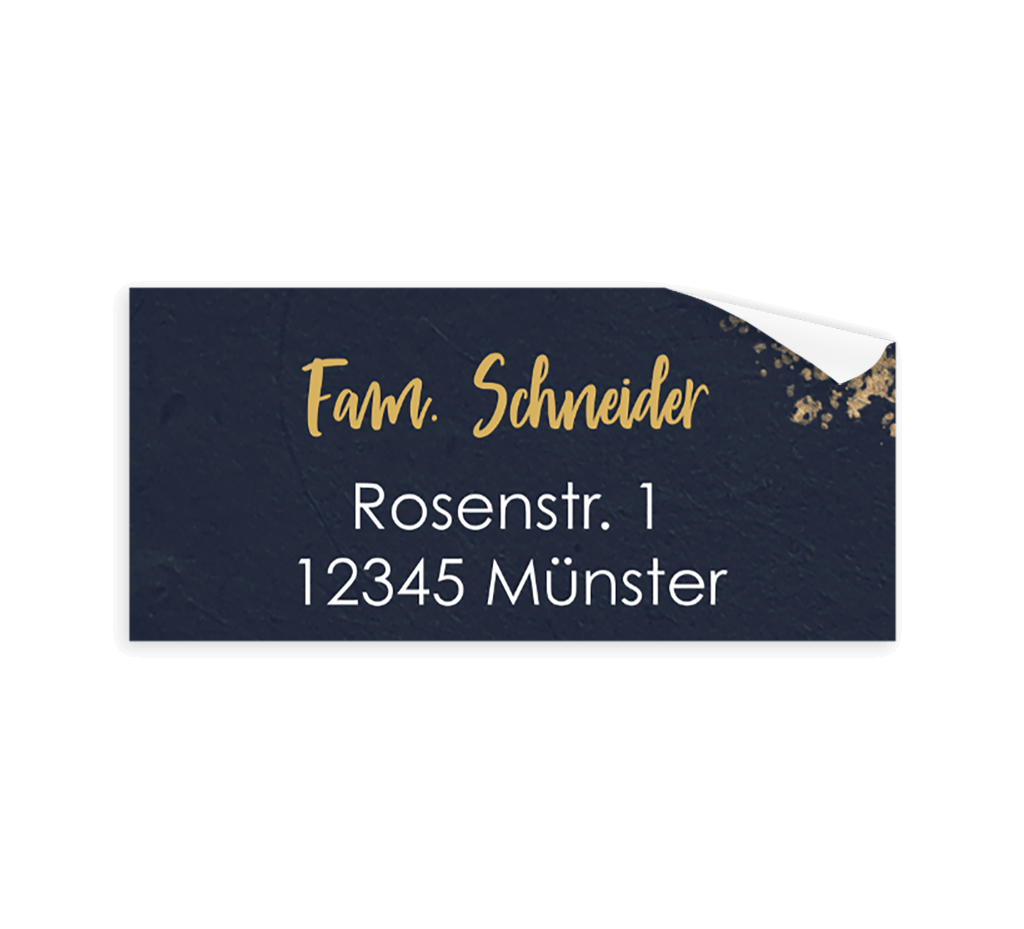 Blaue Adressaufkleber Geburtstag mit Goldflecken