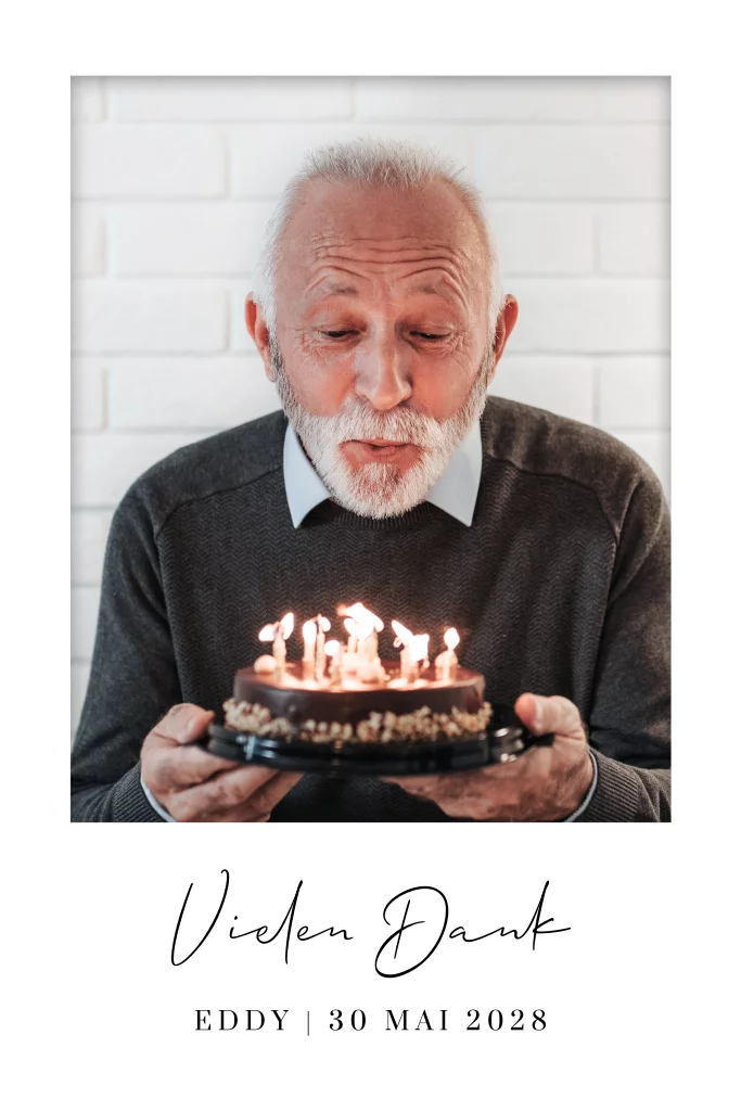 Danksagungskarte im Polaroid-Look mit großem Foto