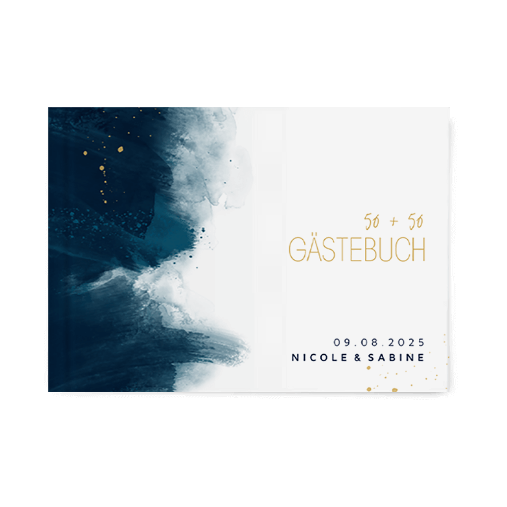 Gästebuch mit Aquarell und Gold-Look-Klechsen zum Geburtstag