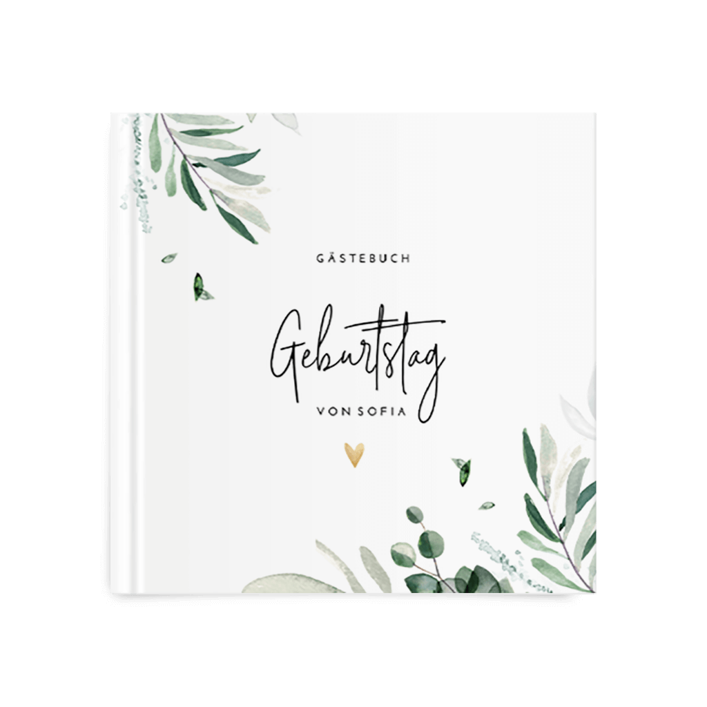 Gästebuch für die Geburtstagsfeier mit Zweigen und Herzchen 30x30 cm