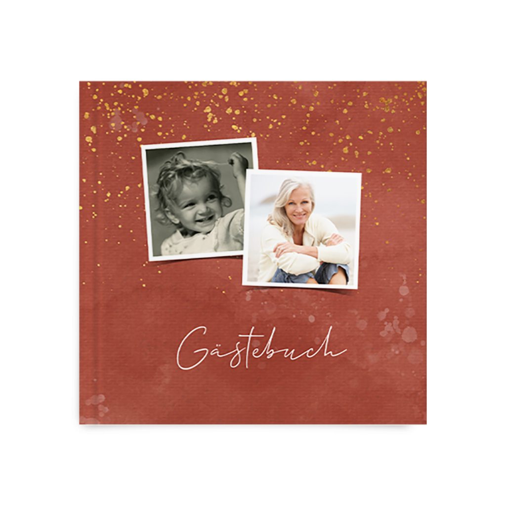 Terrakottafarbenes Gästebuch zum Geburtstag mit Fotos Quadratisch