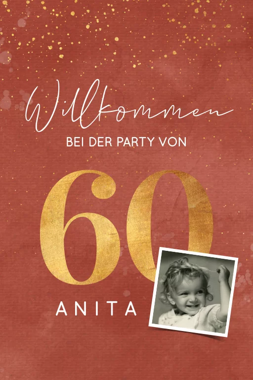 Rostbraunes Willkommensschild mit goldener 60