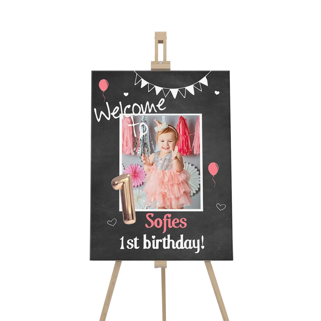 Willkommenscchild 1 Geburtstag Schultafel-Look