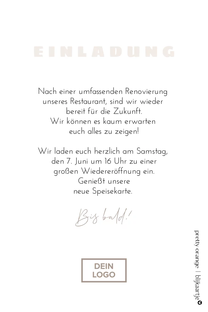 Einladung zur Wiedereröffnung mit Foto und Logo