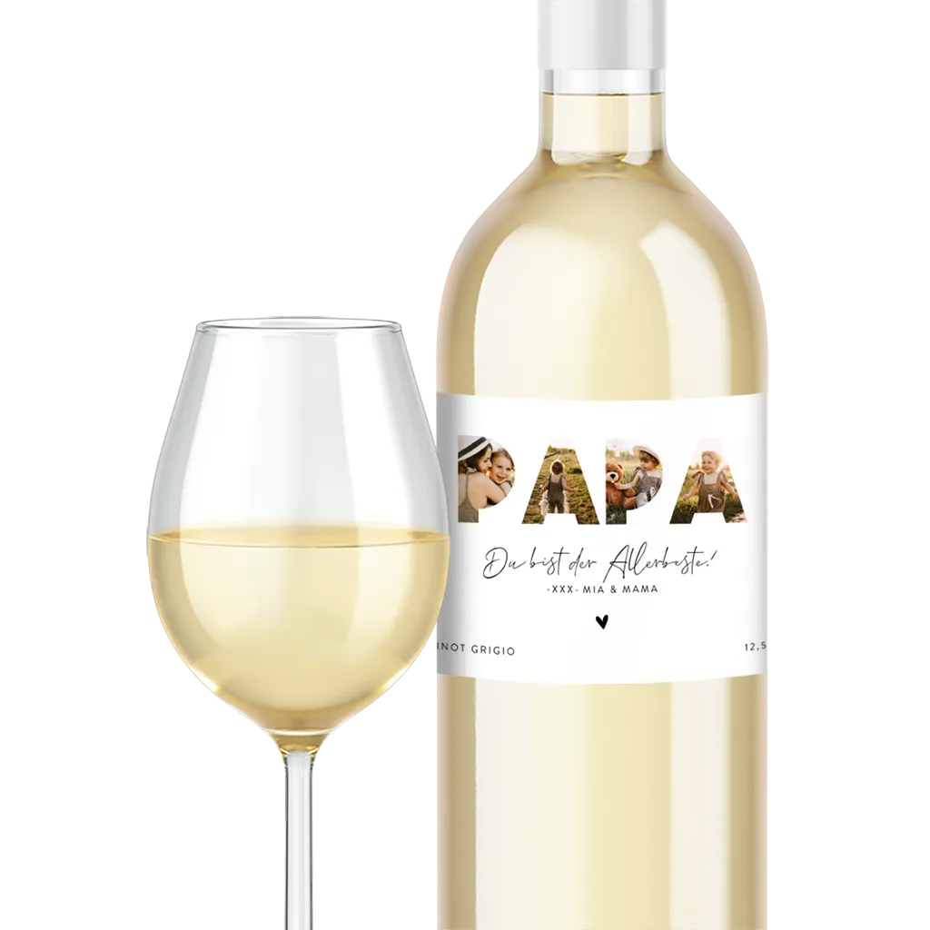 Flaschenetikett zum Vatertag mit Foto als Wort und Botschaft