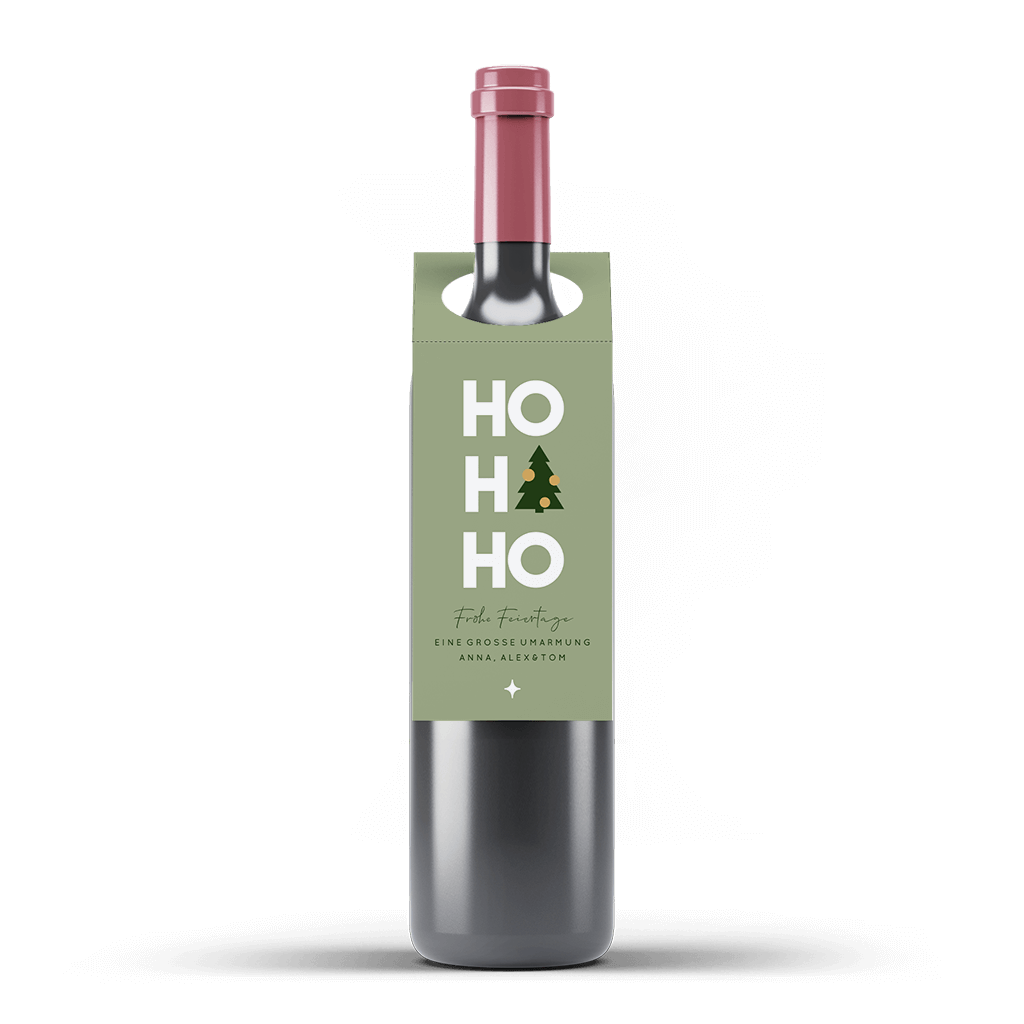 Flaschenanhänger Weihnachten mit "HO HO HO Frohe Feiertage"