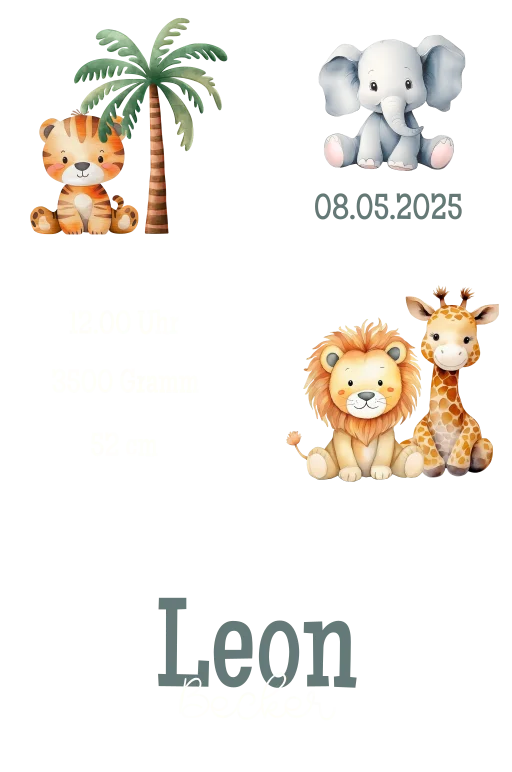Niedliche Bauklötze mit Dschungel Tieren und Palme