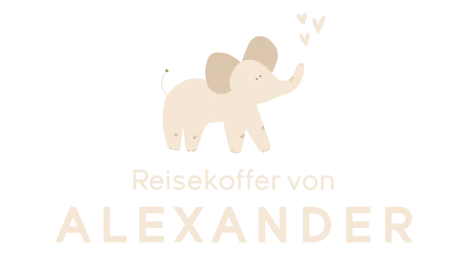 Abenteuerlicher Kinderkoffer zum draufsetzen mit Namen und Elefanten