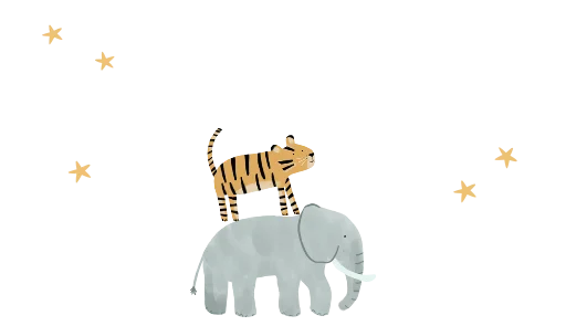 Niedlicher Kinderkoffer mit Namen und Elefant, Tiger und Sternen