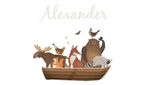 Niedlicher Kinderkoffer mit Namen und Waldtieren auf einem Boot