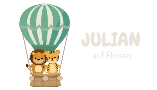 Schlichter Kinderkoffer mit Löwe und Tiger im Heißluftballon und Namen