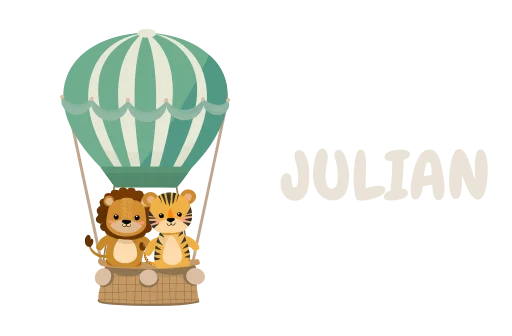 Schöner Kulturbeutel mit Löwe und Tiger im Heißluftballon und Namen
