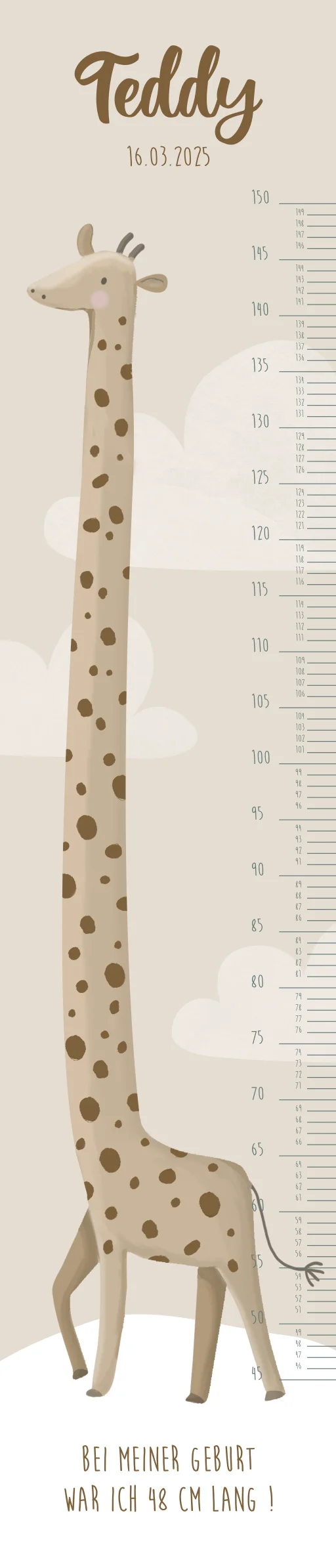 Beige Kindermesslatte zum Aufhängen mit Giraffe