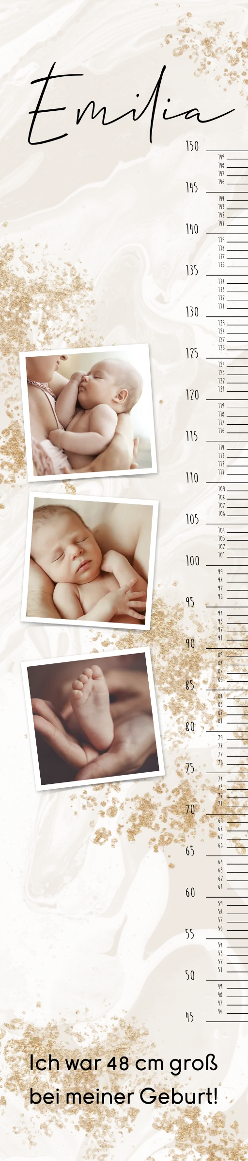 Messlatte Kinderzimmer mit Fotos und Goldspritzern. Spezifikationen: