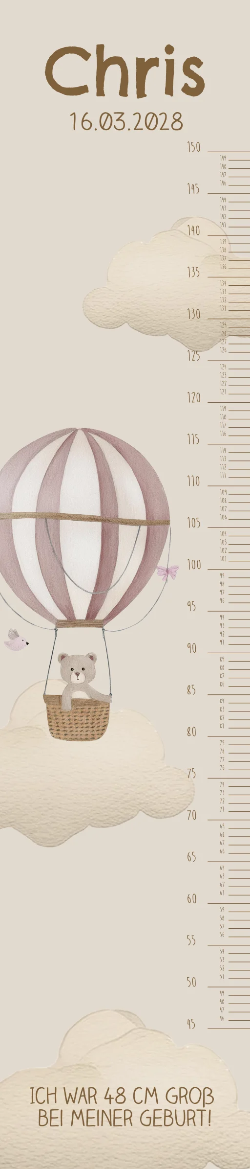 Messlatte Kinderzimmer mit Heißluftballon und Bär. Spezifikationen: