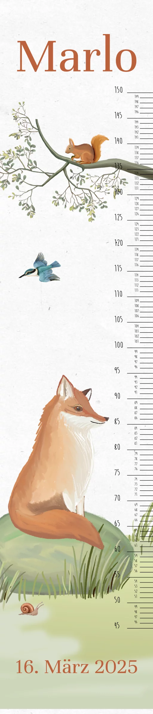 Messlatte Kinderzimmer mit Waldtieren. Spezifikationen: