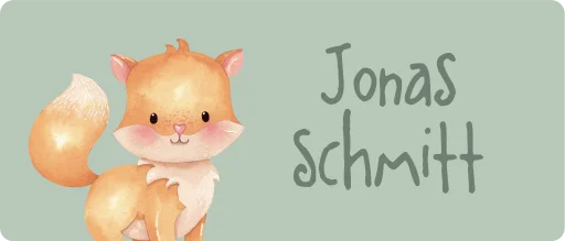 Namensaufkleber mit Fuchs und Namen 70x30 mm