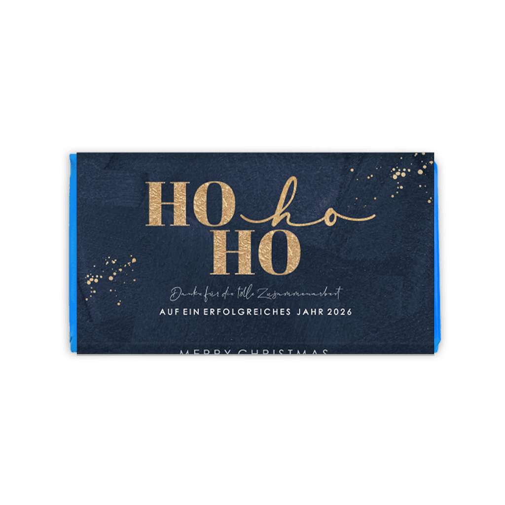 Festliche Schokoladenverpackung als Firmengeschenk zu Weihnachten mit Goldsprenkeln