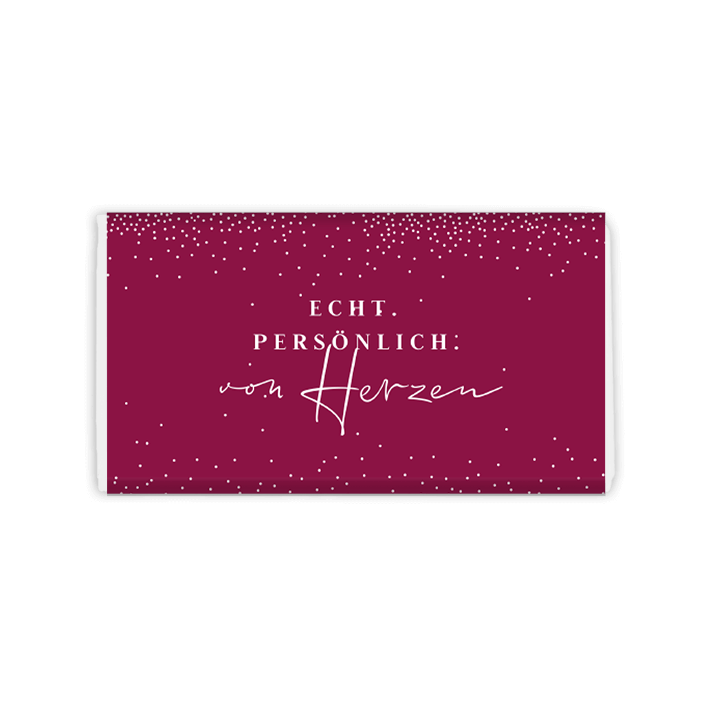 • Wenn du die Schokolade direkt als Geschenk an jemanden zustellen lässt, dann vergiss nicht, deinen eigenen Namen im Design unterzubringen.