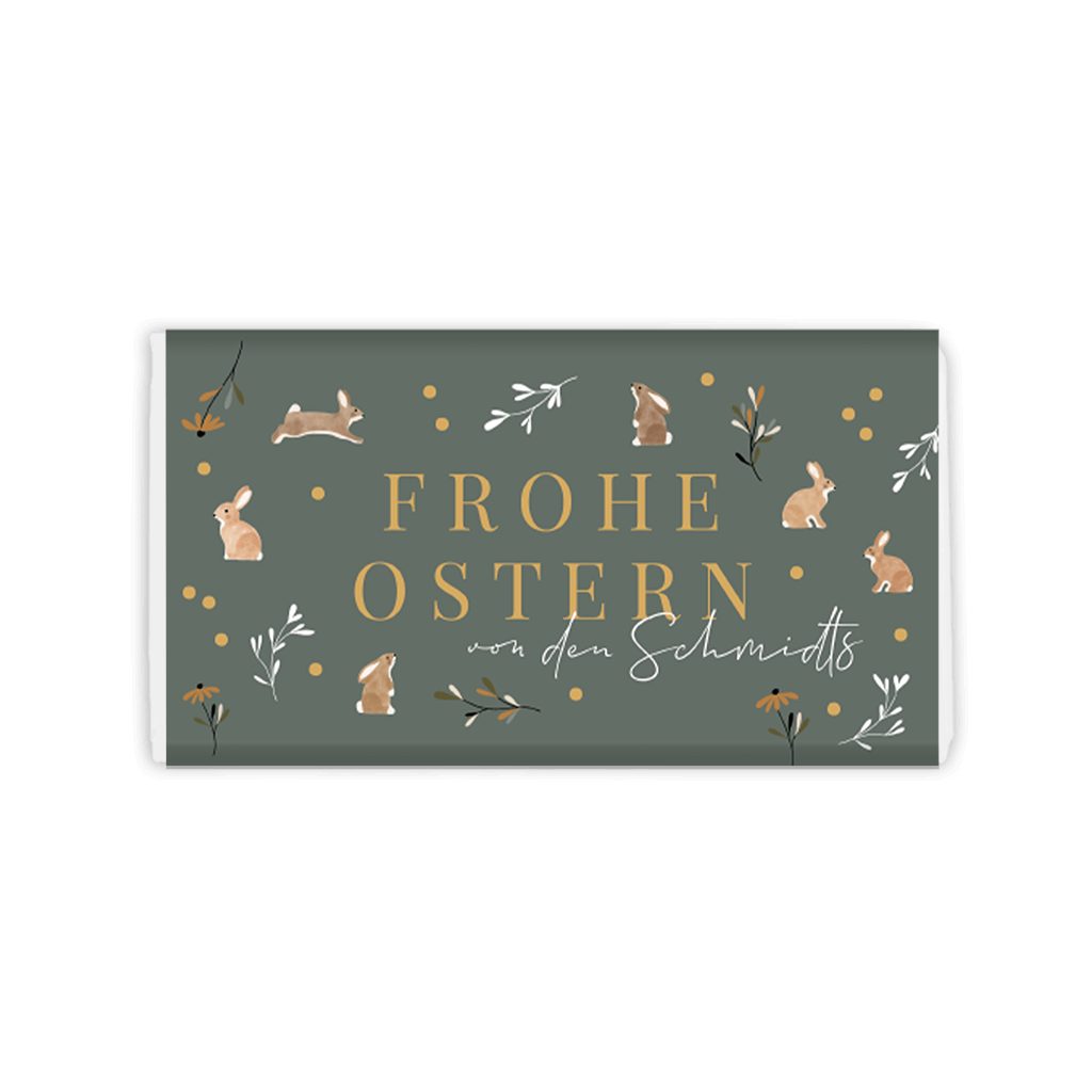 Personalisierbare Schokoladenverpackung mit Hasen und Zweigen