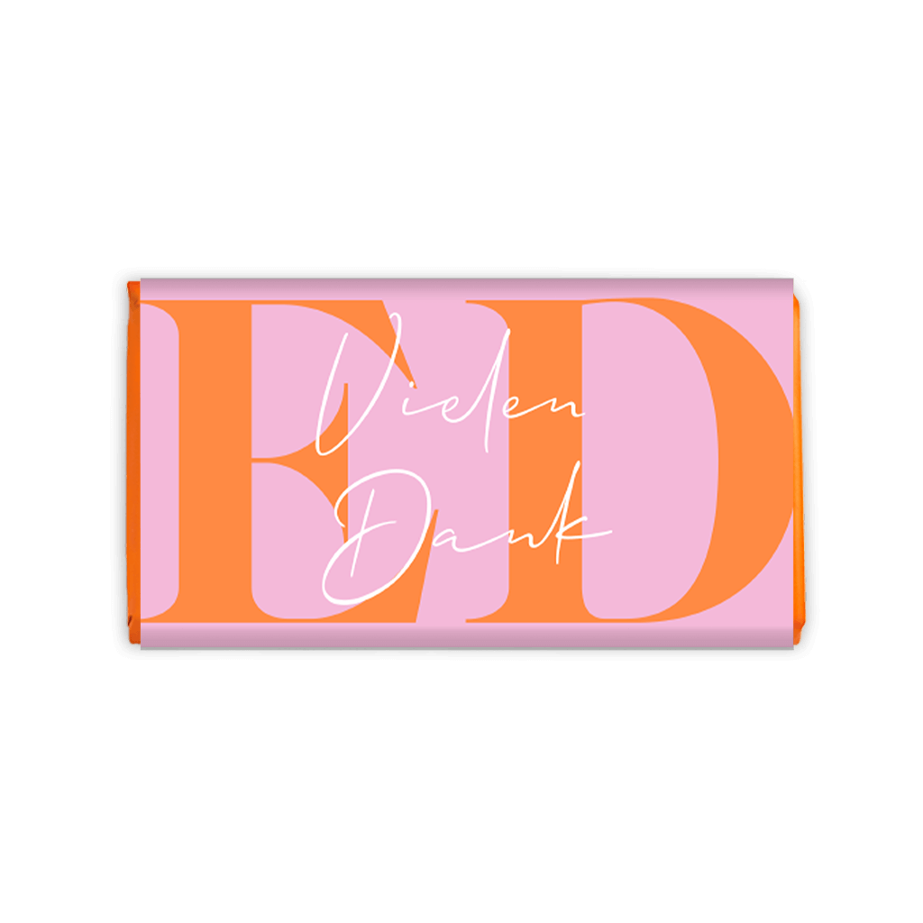 Wenn du die Schokolade direkt als Geschenk an jemanden zustellen lässt, dann vergiss nicht, deinen eigenen Namen im Design unterzubringen.