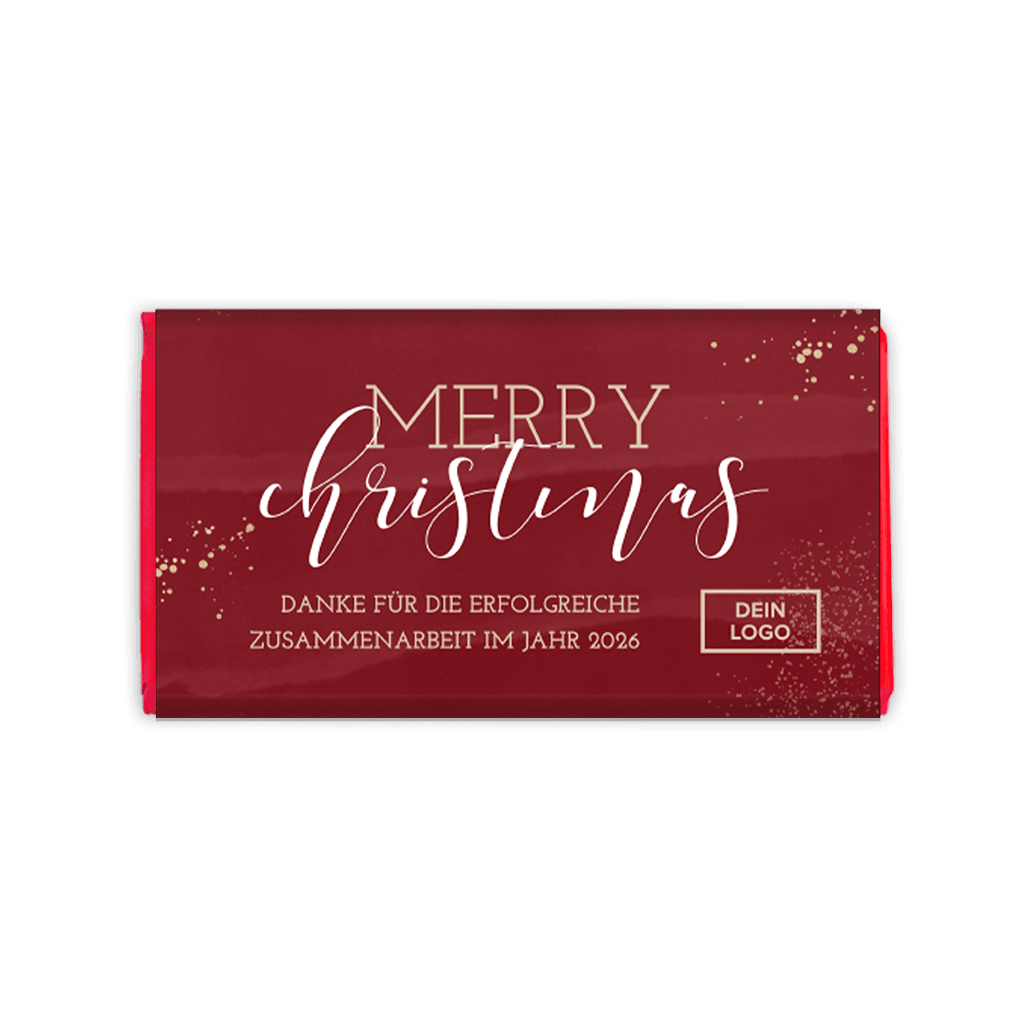 Schokoladenverpackung als geschäftliches Weihnachtsgeschenk mit eigenem Logo.