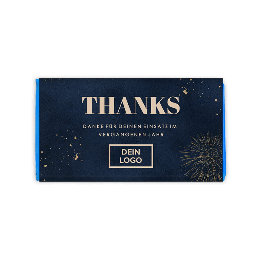 Schokoladenverpackung als Geschenk mit Logo und Feuerwerk