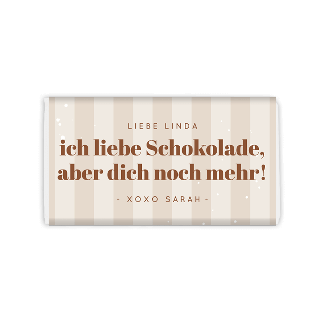 Beige Schokoladenverpackung mit Streifen und der Frage "Willst du meine Trauzeugin sein?"| 26 × 15 cm | ab 6,25 € Stckpr. |