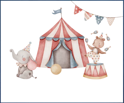 Fröhlicher Baumwoll-Aufbewahrungskorb mit Zirkusthema und Namen