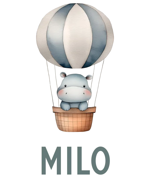 Dopper Thermosflasche mit Namen, Heißluftballon und Nilpferd