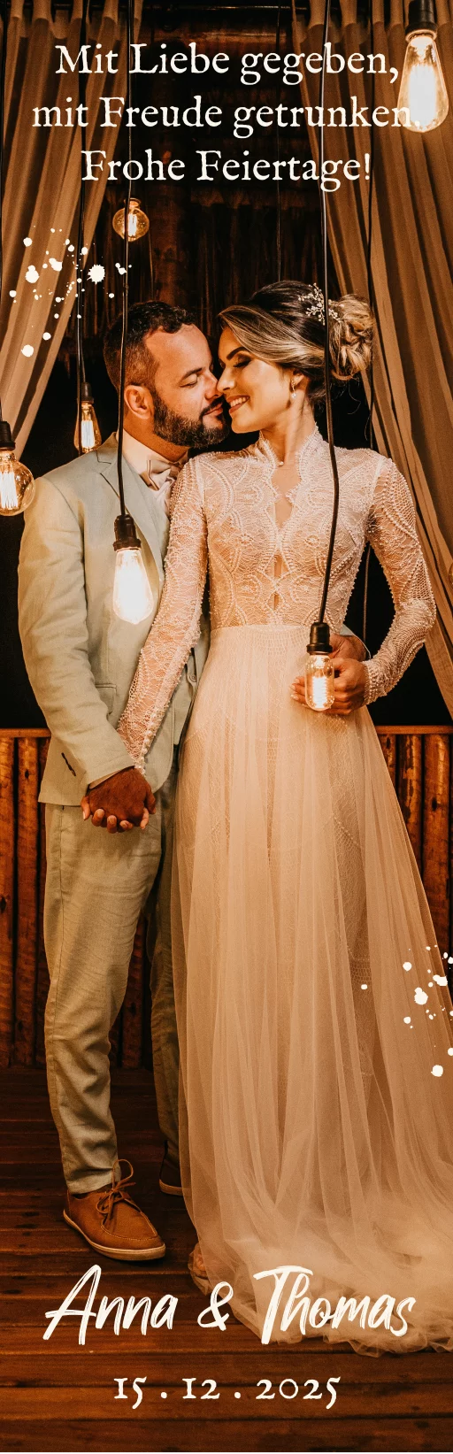 Weihnachtliche Geschenkbox für Weinflasche mit Hochzeitsfoto