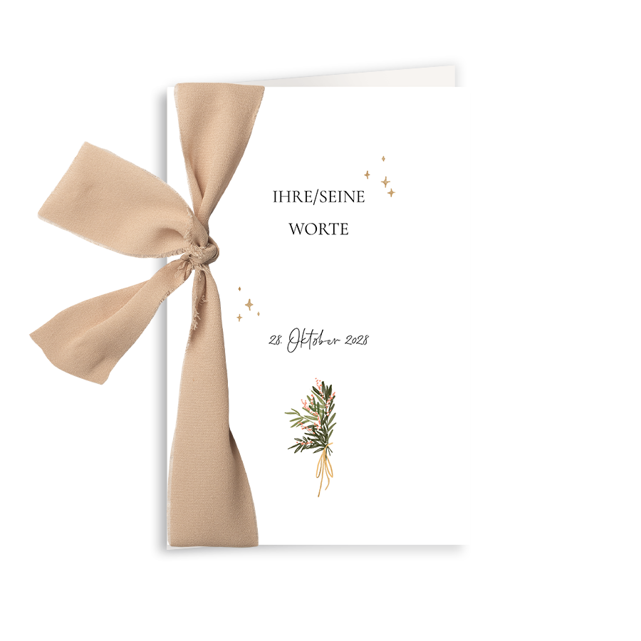 Erstelle einen stilvollen Umschlag für deine Gelübde. Mit unserem wunderschönen Seidenband rundest du das Büchlein perfekt ab!