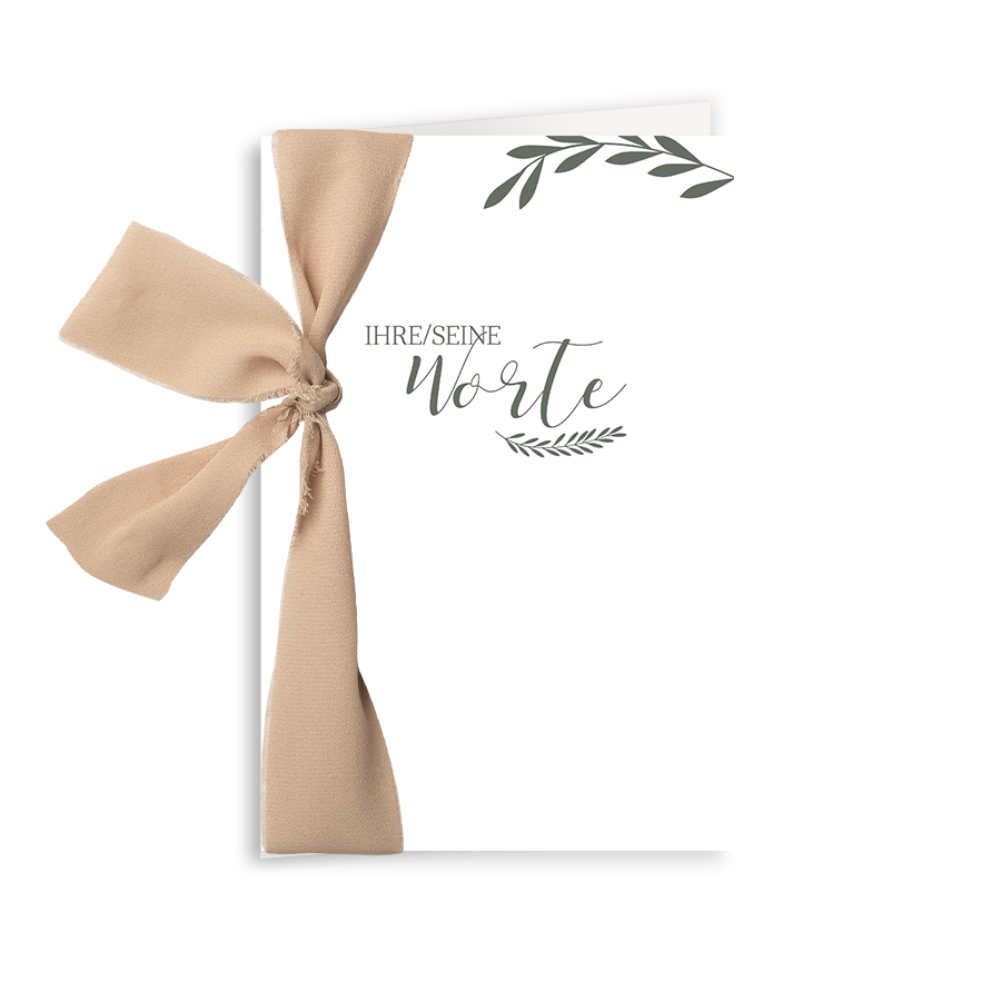 Erstelle einen stilvollen Umschlag für deine Gelübde. Mit unserem wunderschönen Seidenband rundest du das Büchlein perfekt ab!
