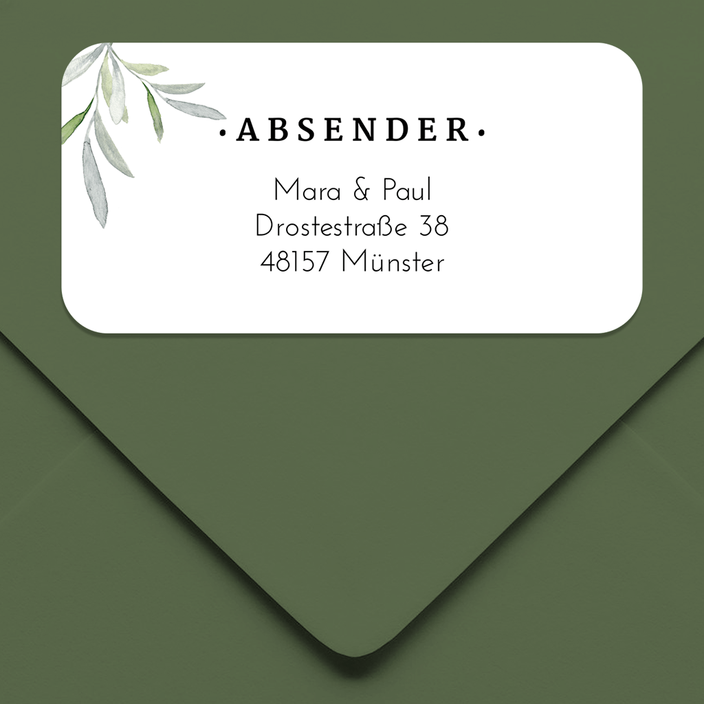 Absenderaufkleber mit grünen Aquarell Zweigen 50x25mm 14 Stück