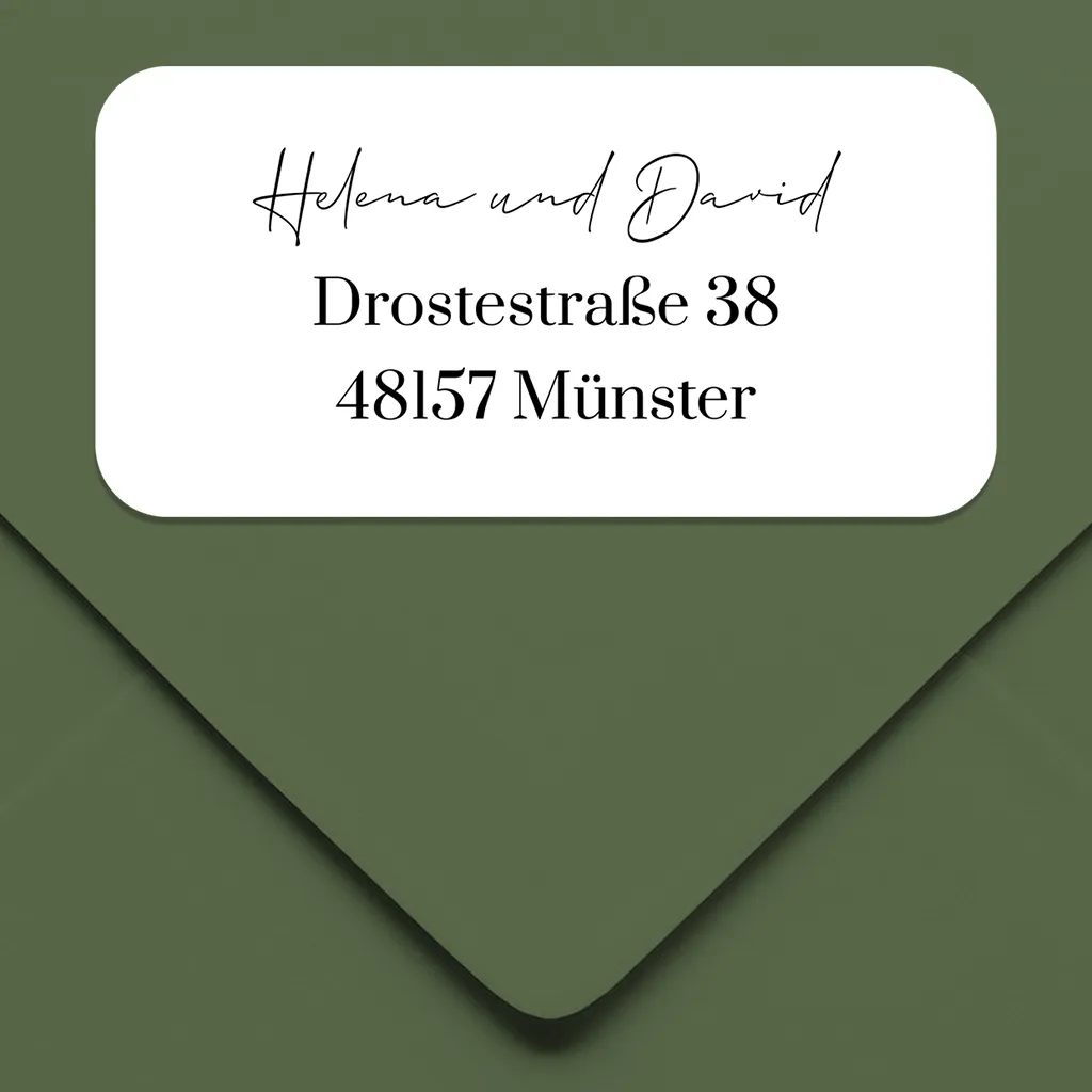 Schlichter Absenderaufkleber in Weiß mit geschwungener Schrift