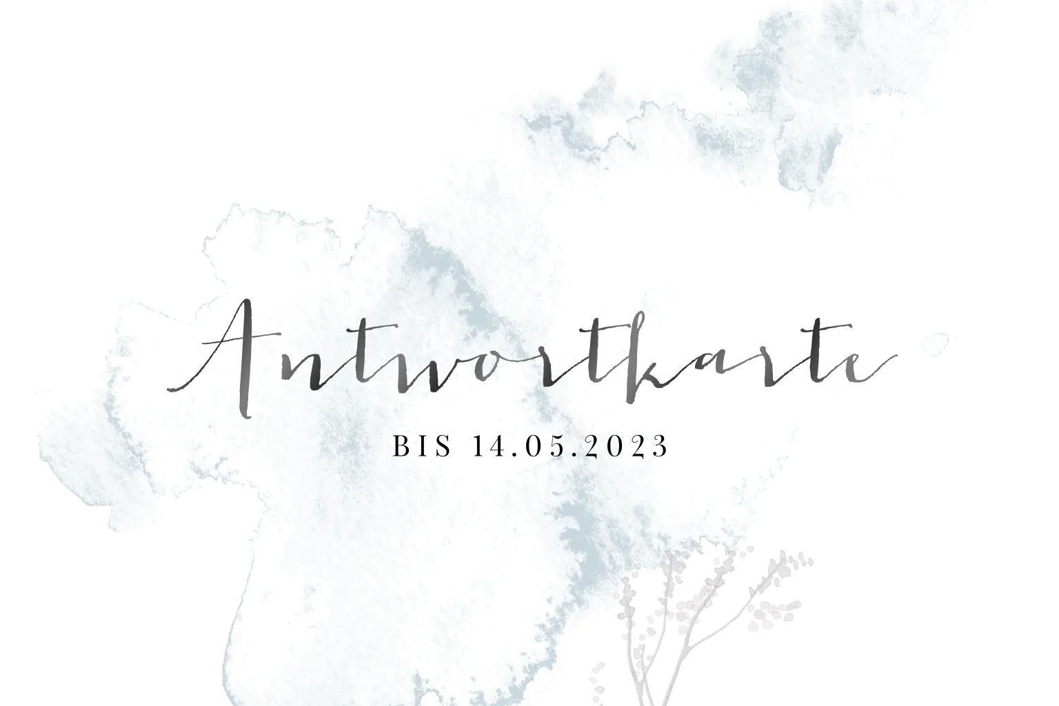 Antwortkarte mit Aquarell und schwarzem Hochglanzschrift