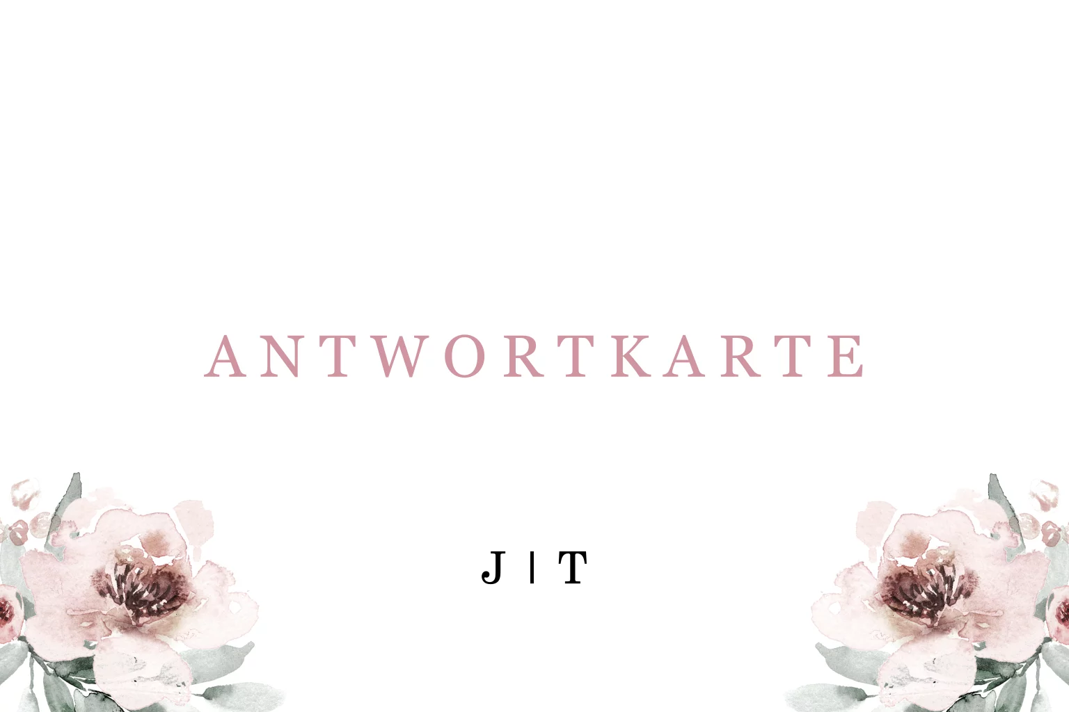 Deine RSVP karte passend zur Hochzeitseinladung mit wunderschönen romantischen Blumen und puderrosa Schriftzug. Auf der Rückseite findest du schon vorgegebene Sätze die du benutzen kannst oder selbst gestaltest.Melde dich für unseren Newsletter an und profitiere von exklusiven Angeboten, kreativen Ideen und Neuigkeiten aus unserer Produktwelt. Als Dankeschön für deine Anmeldung schenken wir dir einen kostenlosen Probedruck deiner Karte.