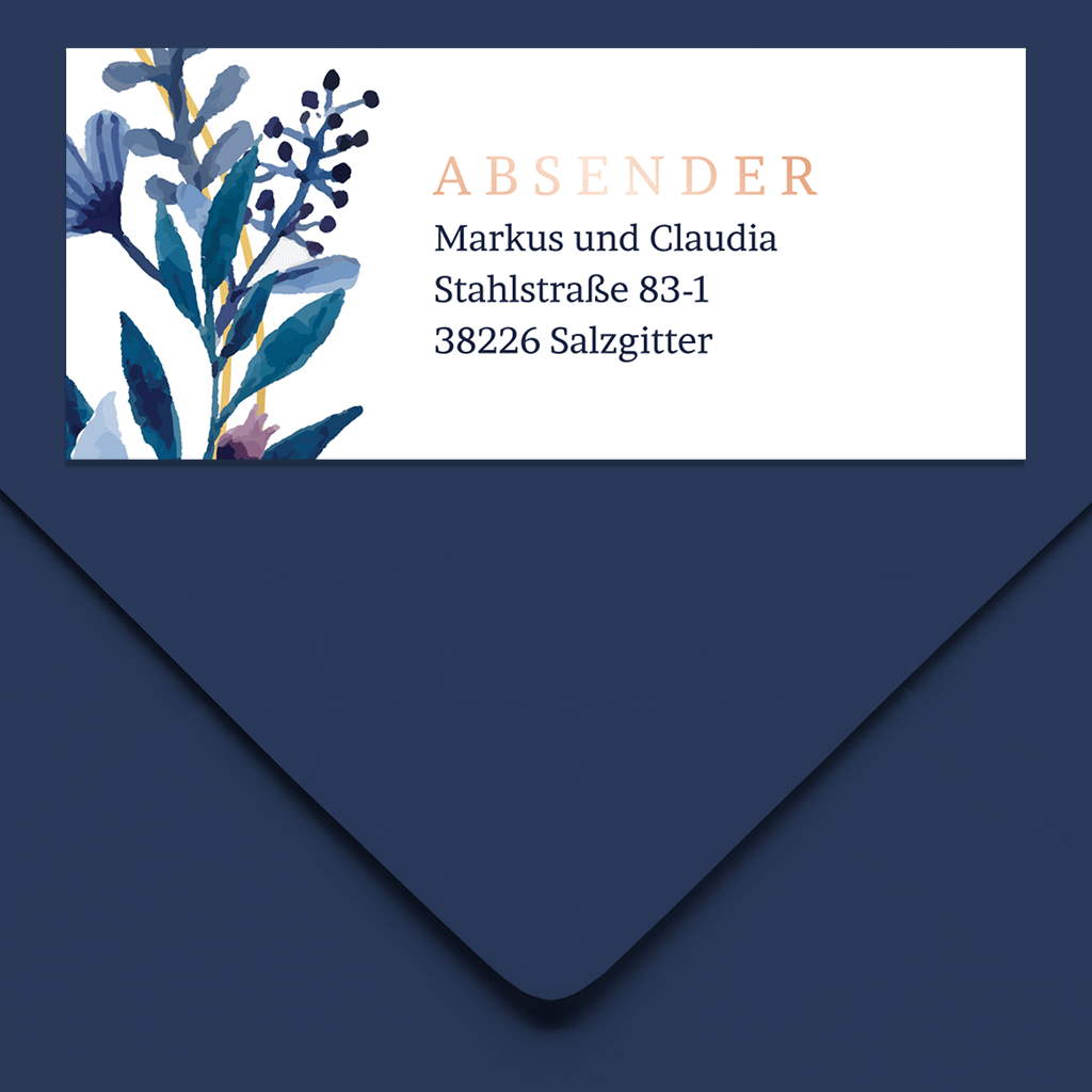 Absenderaufkleber mit Blumen in blau 70x30mm 14 Stück