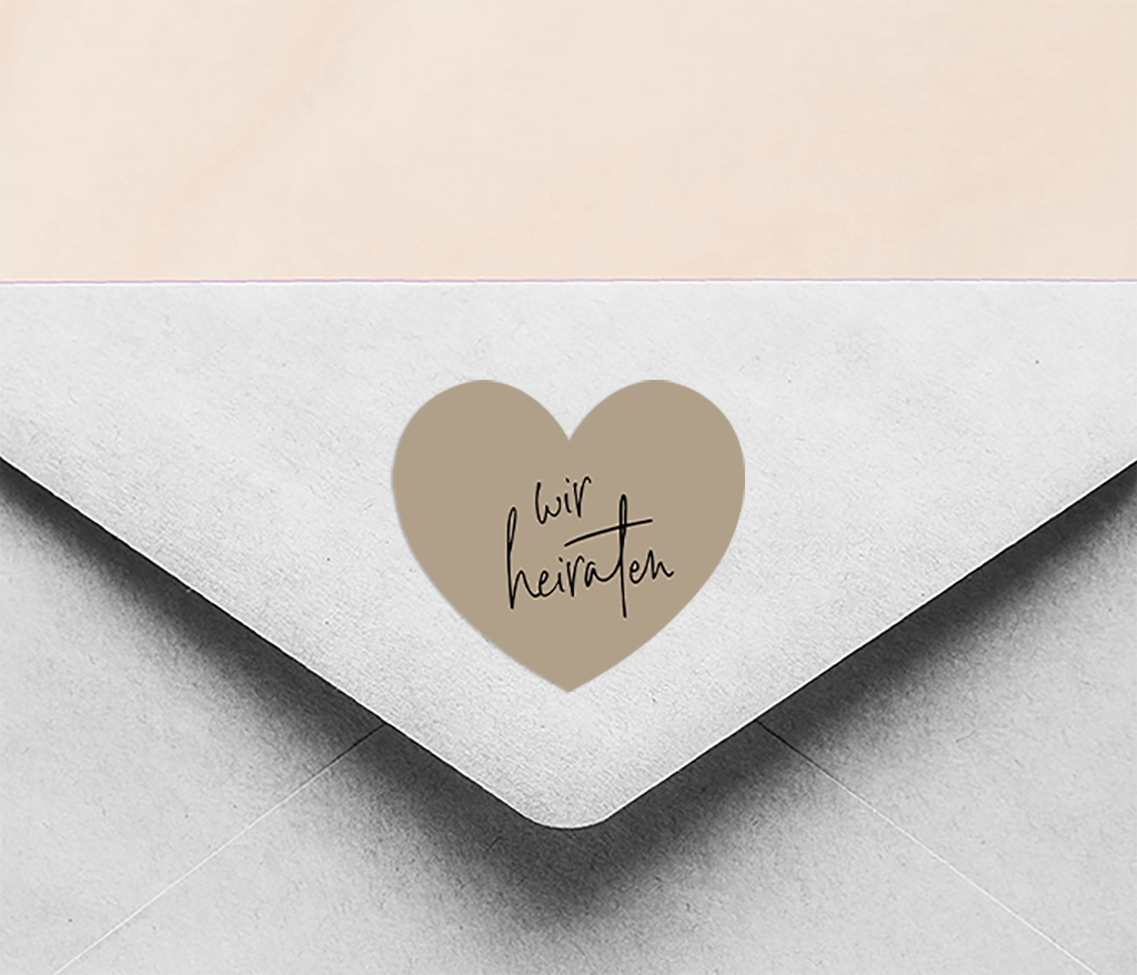 Aufkleber mit "Wir heiraten" auf braunem Hintergrund 35x31mm 30 Stück