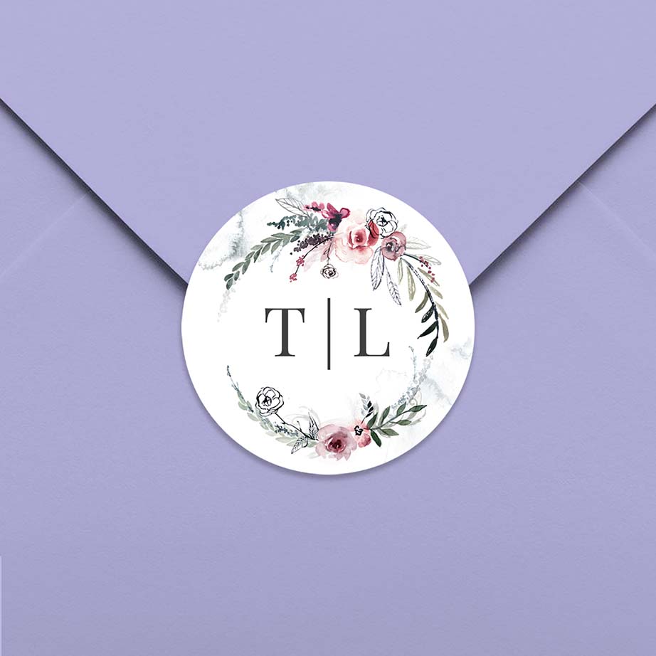 Aufkleber mit Blumenkranz im Aquarell-Look 35mm ø 25 Stück