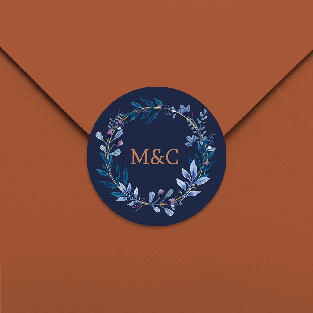Aufkleber mit Blumenkranz in blau rund 35mm 25 Stück