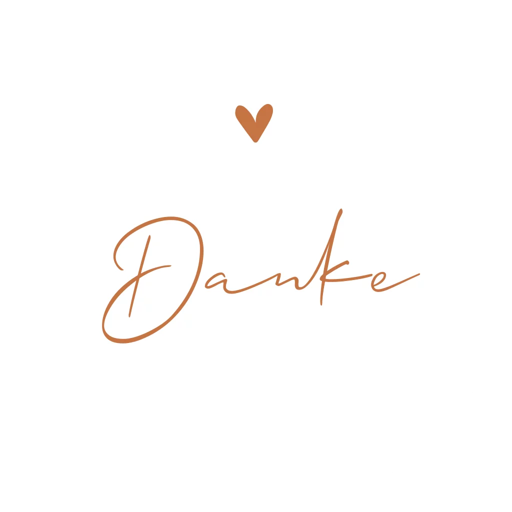 Aufkleber "Danke" mit Herzen und rostbraune Farbe