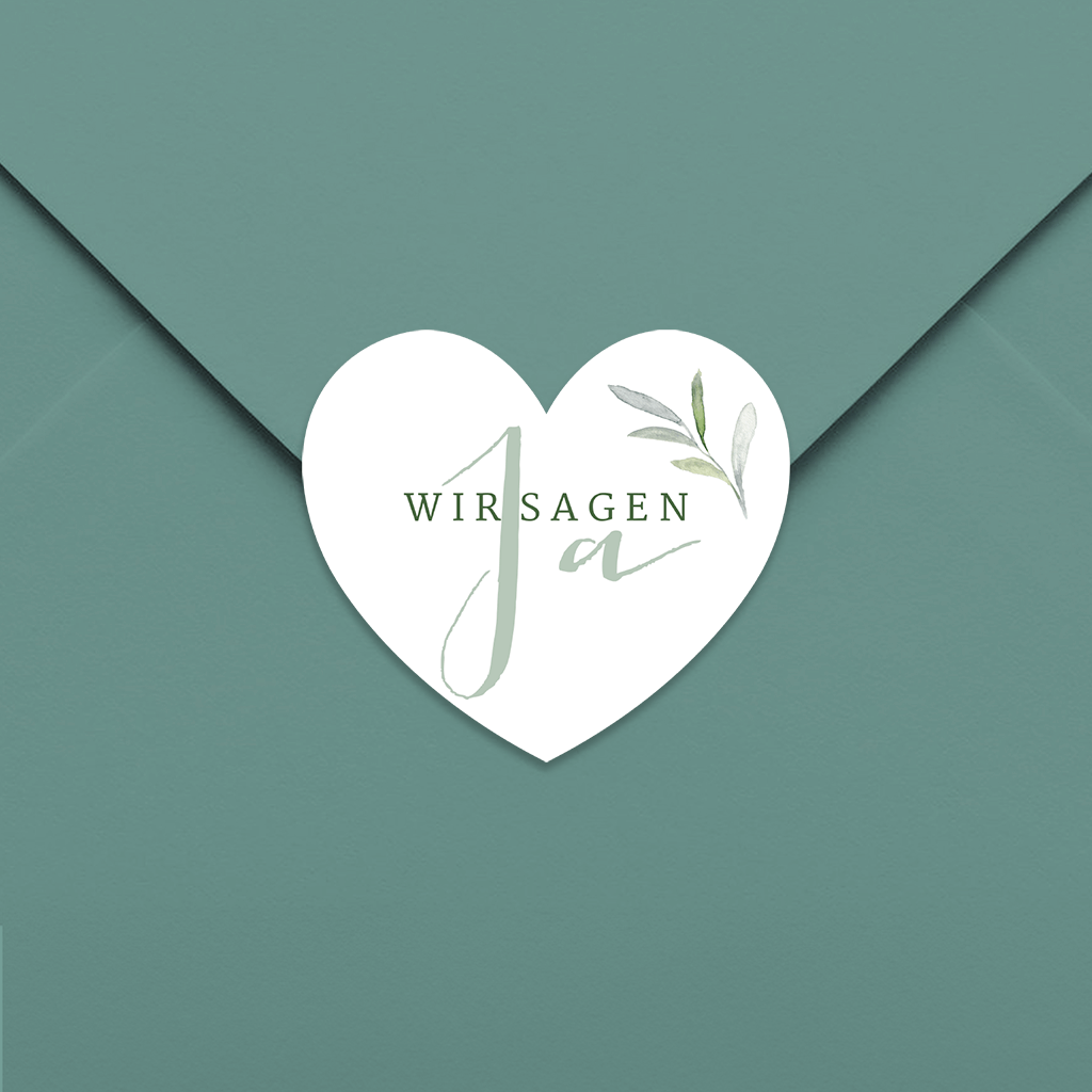 Aufkleber Herz mit grüne Aquarell Zweige 35x31mm 30 Stück