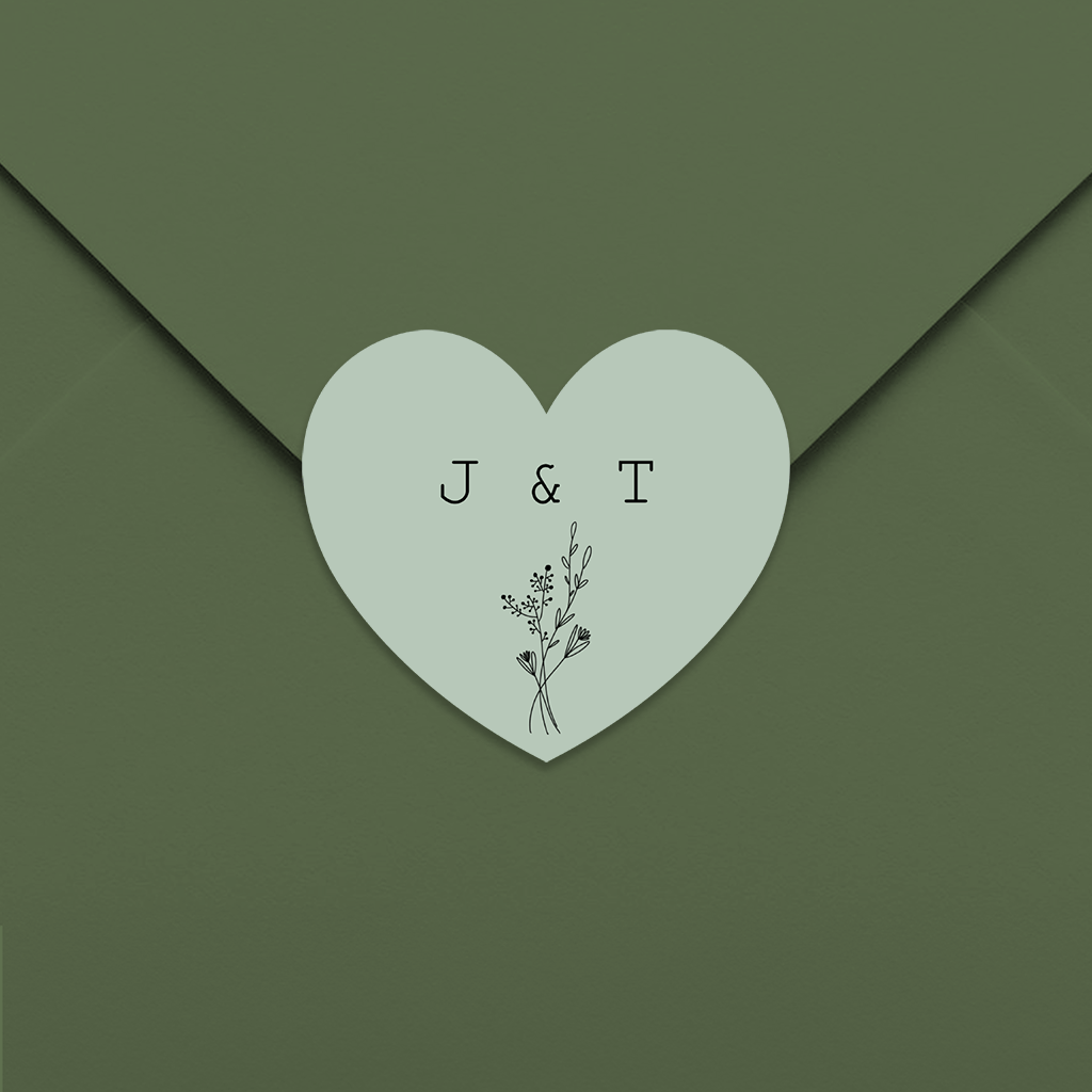 Aufkleber Herz in Schwarz Grün mit Blumen und Initialen 30 Stück