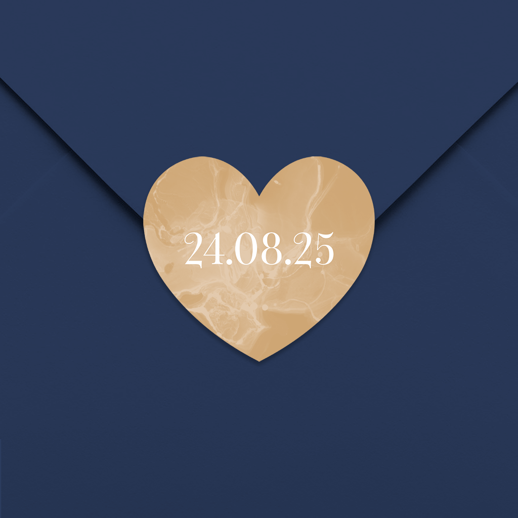Aufkleber Herzform Goldfarbe Datum