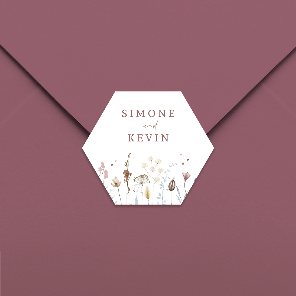 Aufkleber Hexagon mit getrockneten Blumen 35x30mm 30 Stück