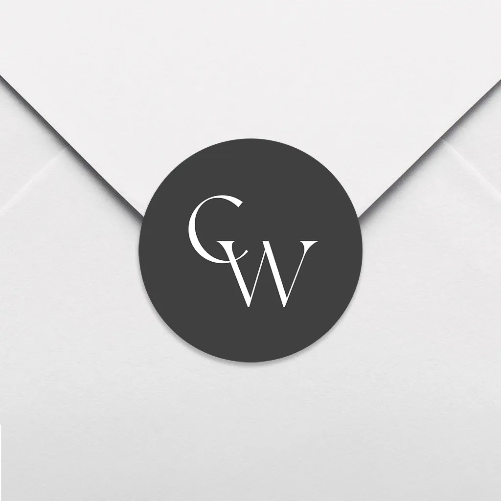 Aufkleber mit Initialen in Grau und Weiß, 35mm ø 25 Stück